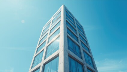 Concrete structure featuring expansive glass panes, functioning as a city office exterior, urban infrastructure