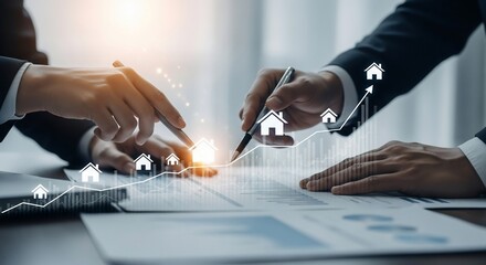 Real estate investment growth opportunity shown in business report with rising home values and market analysis