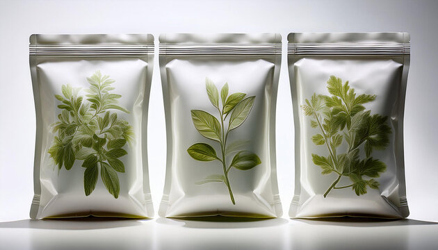 Doypacks designed for storing and selling herbs and spices resealable white