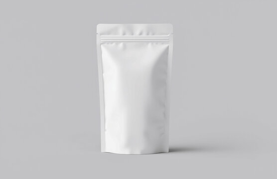 Crumpled white plastic resealable pouch on a light background – minimal design for branding