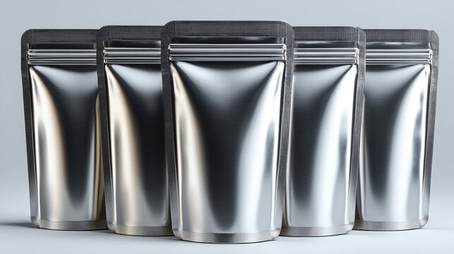 Metallic pouch silver mylar stand up packaging resealable blank food storage shiny reflective Sleek metallic pouch silver mylar stand up packaging