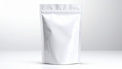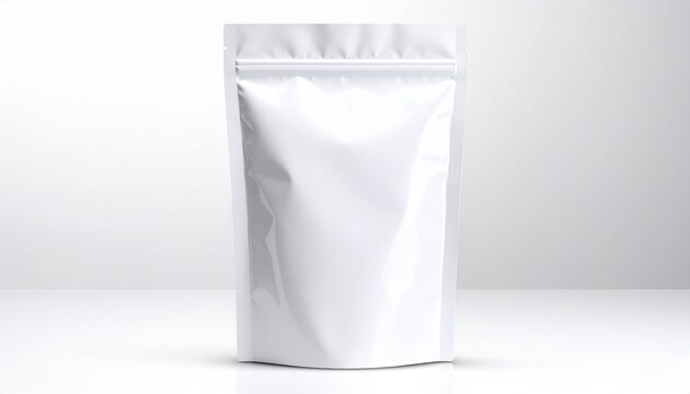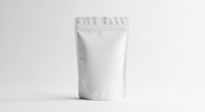 Plain white stand-up pouch with resealable zipper on light neutral background
