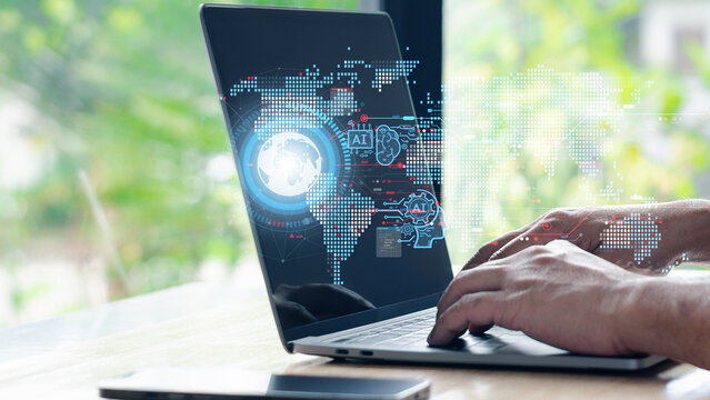 Technology in future can support all business 4.0. Industrial IoT is technology with humans to Upskill Reskill, IIoT, Digital Transformation. Ai connection automation to global cyber network concept.