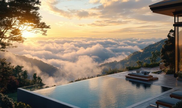 Tranquil swimming pool oasis with waterfall feature in a lush tropical resort setting