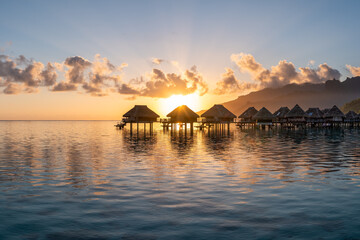 Paradise beach with turquoise ocean and resort in Bali. Aerial view