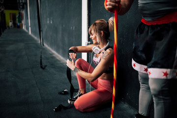 Boxing partners preparing and supporting each other at the gym
