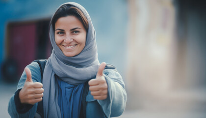 Woman show thumbs up positive feedback, Satisfied lady showing OK gesture, Excellent or good review result concept, Customer giving rating for experience or quality product and service, Opinion survey