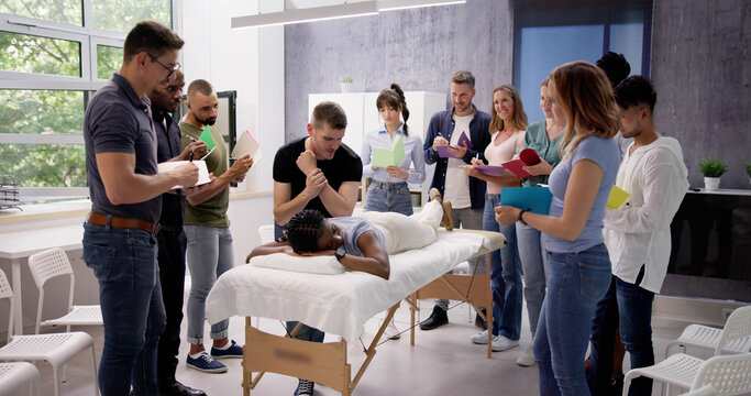 Male Instructor Teaching Massage Technique To Group