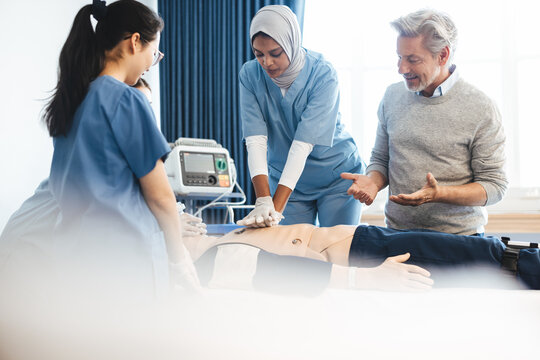 Clinical simulation and CPR training: Medical students learn from a doctor