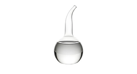 Glass retort flask with clear liquid chemical isolated on white background for science and chemistry