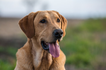 Golden retriever close-up with tongue out
