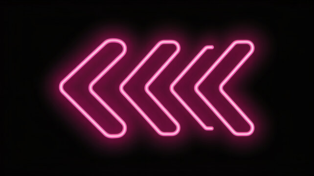 Neon pink arrows pointing left on a black background, representing direction, movement, and retro style