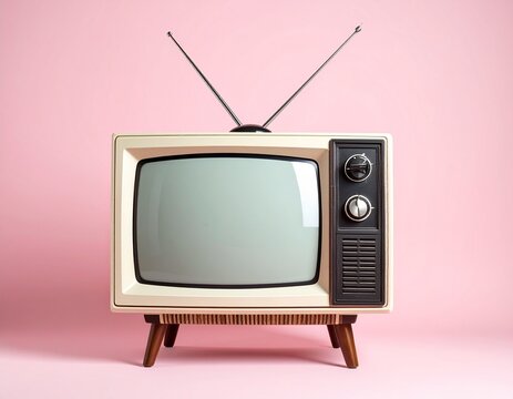 Vintage television - antique wooden box television with cut out frame screen isolate for object, retro technology