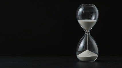 Monochrome image of an hourglass on a dark backdrop showing time passing, concept for deadlines, countdowns and urgency visualization