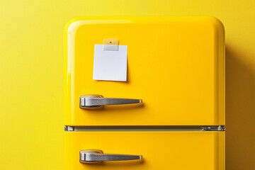 bright retro yellow fridge in coffeehouse