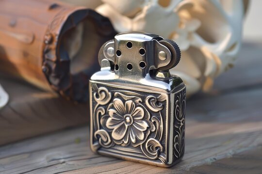 closeup and macro concept shot of the lighter and tinderbox on the white background