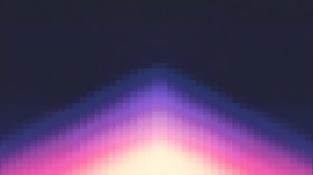 Retro pixel ribbon waving across ornate patterned canvas with rolled ends and gradient