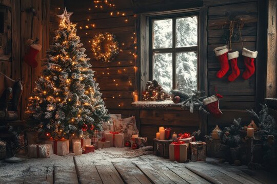 Cozy Christmas scene with a nostalgic, retro theme