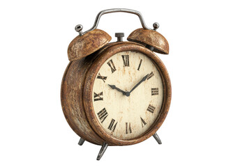 Antique brass alarm clock with roman numerals timepiece