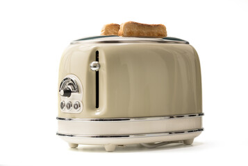 Retro toaster and toasted slices of bread isolated on white background with clipping path