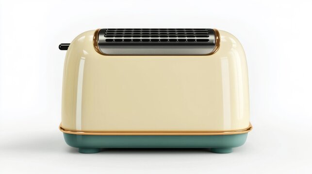 Retro-style toaster with a glossy beige finish on a white background. Generative AI