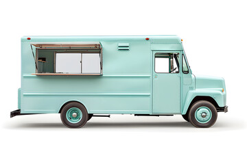 Colorful food truck illuminated by string lights at night. Selling snacks and drinks at music festival. Catering at city fair.