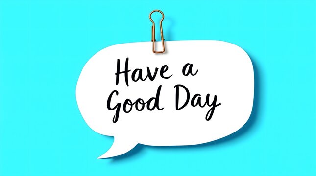 digital image with a white speech bubble on a bright blue background, containing the handwritten text "Have a good day" in a light blue