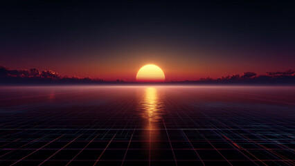 A retro style with neon lights and grids, cyberpunk sci-fi background