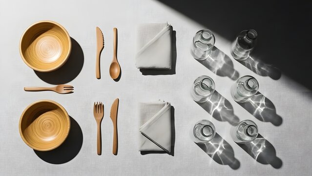 Rustic table setting on wooden surface with natural accents