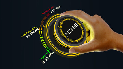 Noise Control Concept with knob button changing value Best to Dangerous  and reverse