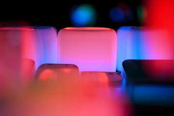 Glowing led bar front with herringbone geometric lines rgb backlit neon for modern lounge