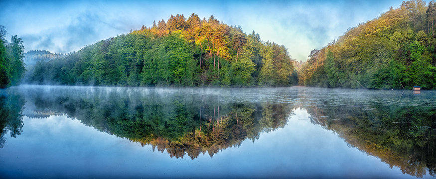 Clausensee, Waldfischbach-Burgalben. Bathing lake, bathing beach at  Lake Clausen in rhineland palatinate, Pfälzerwald, Germany