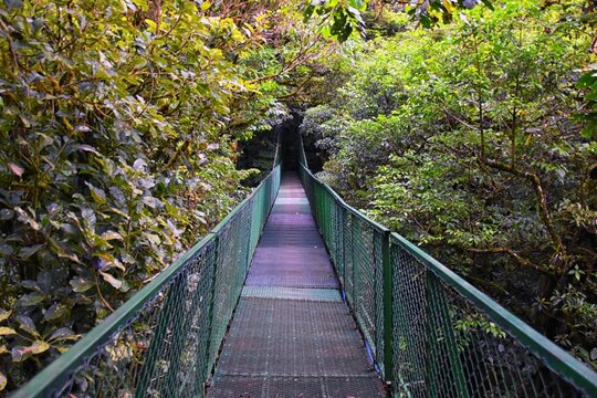 Beautiful view of a canopy bridge in the tropical rain forest in Costa Rica