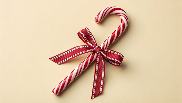 Single candy cane with red ribbon