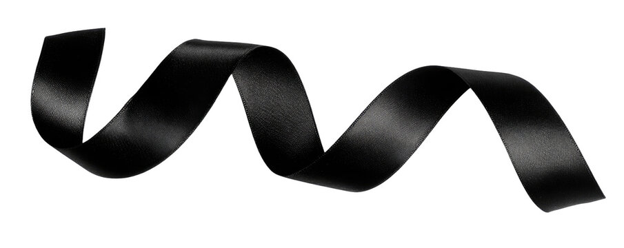A dark, elegant black ribbon curls in a graceful, flowing design