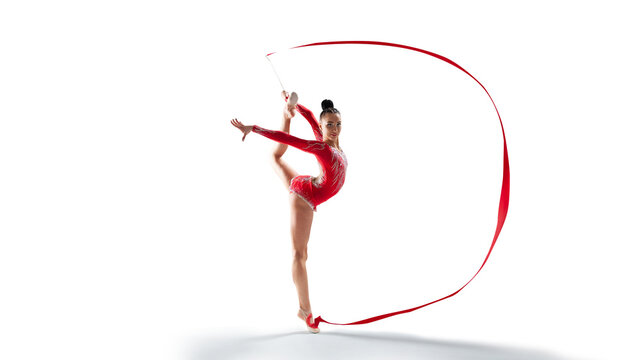 Rhythmic gymnast isoladed on white.