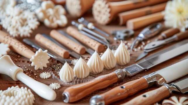 Fondant Tools: Various tools for shaping, sculpting, and detailing fondant decorations