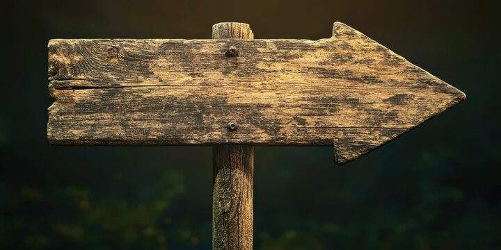 wooden directional post with arrow pointing right on  ski slopes in snow capped  peak