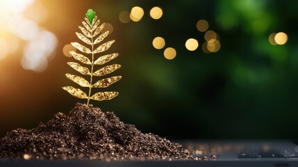 A futuristic digital illustration featuring a glowing golden ring emitting vibrant particles over a high-tech background with charts and graphs.