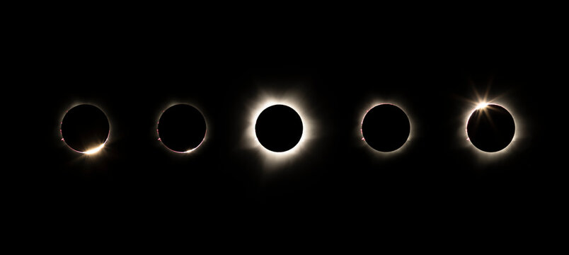 nightscape, night full of stars, panorama of the hybrid solar eclipse, Exmouth, Australia, 20.04.2023, diamond ring  and full solar eclipse with visible corona