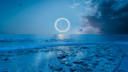 Ring of Fire - Long exposure photo - Beautiful landscape, Solar eclipse in the background