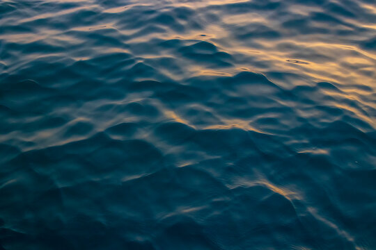 Gliding silvery-blue water ripples creating diagonal parallel wavelets for calm abstract background