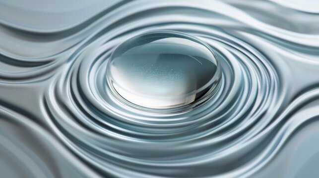Perfect water droplet with ripple on calm surface creating sense of tranquility