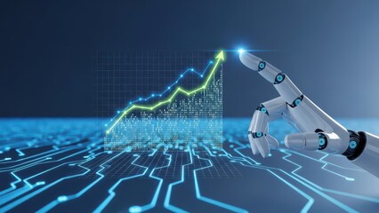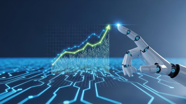 Upward financial trend is shown by vibrant orange and blue digital graph ascending to a shining star, indicating growth.