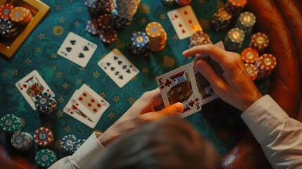 Revealing the River Card: The dealer revealing the river card in a poker game, chips and cards in play.