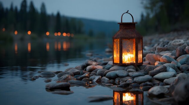 Ethereal mist ascending over serene lakeside with lush vegetation