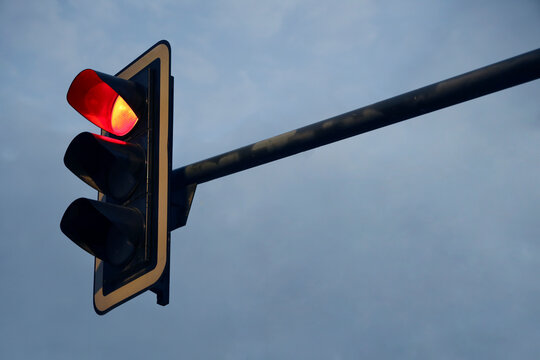 Cars moving on the road in city in late evening. View to the traffic with trafficlights and transport