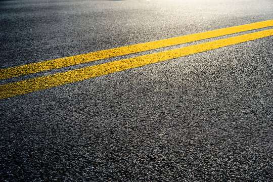 Asphalt road with marking lines. Close-up background texture