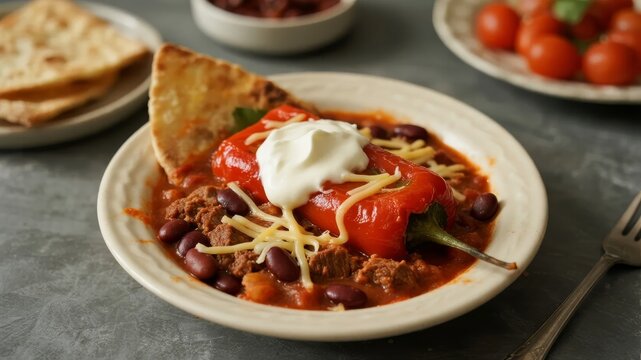 Fresh vegetable salad with stuffed red peppers and cheese on a plate