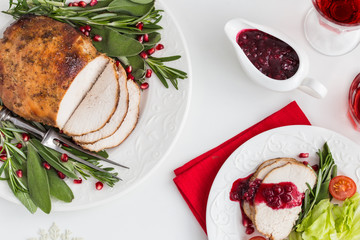 roasted  turkey breast with spicy herbs and cranberry sauce for Christmas dinner